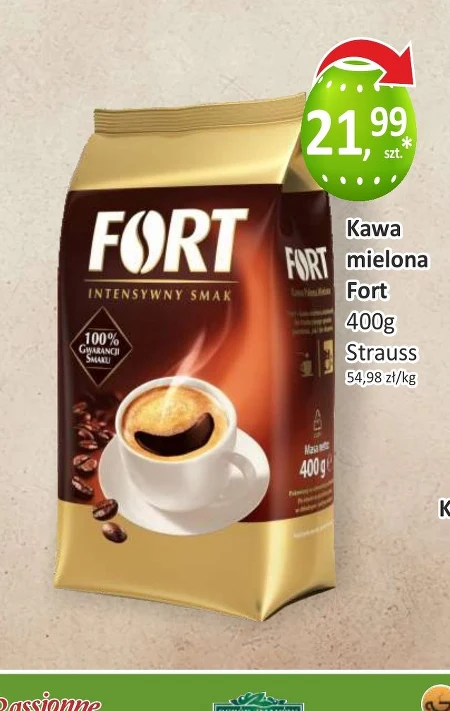Kawa mielona Fort Strauss 400 g w sieci Passa kosztuje 21,99 zł, co daje 54,98 zł za kilogram. To okazja na aromatyczną kawę w niższej cenie niż zwykle, dostępna w ramach aktualnej promocji. Doskonale sprawdzi się do codziennego parzenia w ekspresie lub kawiarce, oferując intensywny smak bez konieczności wydawania więcej. Nie przegap szansy na zaopatrzenie się w ulubiony gatunek w atrakcyjnej cenie – warto skorzystać z tej oferty, zanim promocja się zakończy.