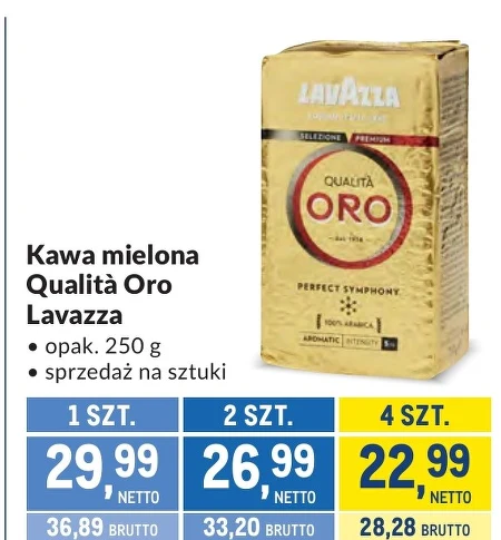 Kawa mielona Qualità Oro Lavazza · opak. 250 g · sprzedaż na sztuki