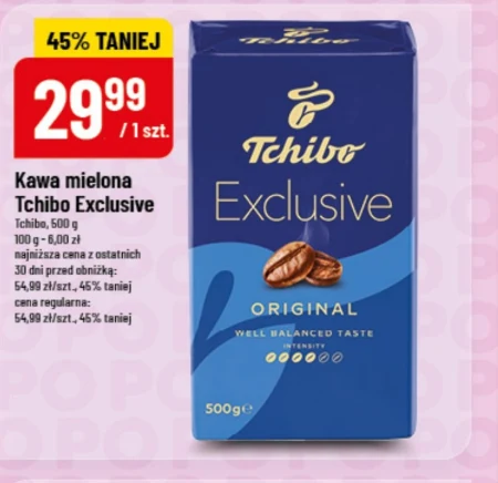 Kawa mielona Tchibo Exclusive Tchibo, 500 g 100 g - 6,00 zł najniższa cena z ostatnich 30 dni przed obniżką: 54,99 zł/szt., 45% taniej cena regularna: 54,99 zł/szt., 45% taniej