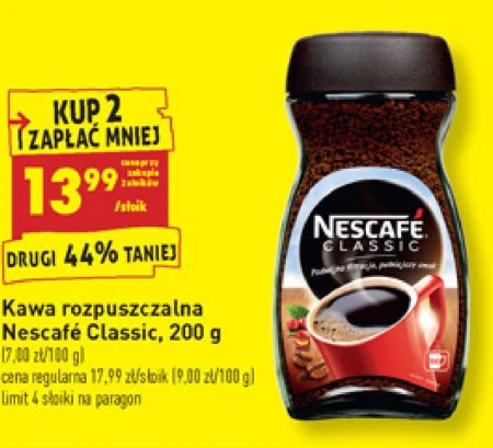 kawa rozpuszczalna Nescafe Classic, 200 g. Kup 2 opakowania a zapłacisz tylko 13,99 zł/szt.