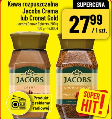 Kawa rozpuszczalna Jacobs Crema lub Cronat Gold Jacobs Douwe Egberts, 200 g 100 g - 14,00 zł