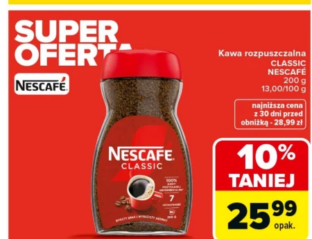 Kawa rozpuszczalna CLASSIC NESCAFÉ 200 g 13,00/100 g najniższa cena z 30 dni przed obniżką - 28,99 zł