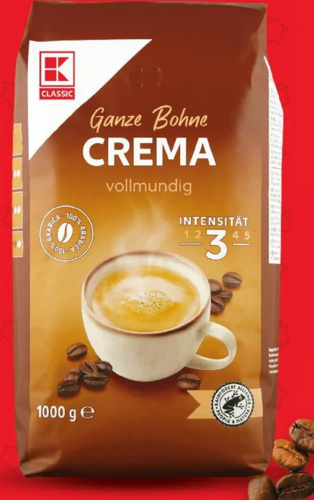 Kawa ziarnista Crema: 1 kg. Najniższa cena z 30 dni przed obniżką: 46,99 zł.