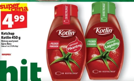 Ketchup Kotlin 450 g Wybrany asortyment Agros Nova Cena za 1 szt. (11,09 zł/kg)