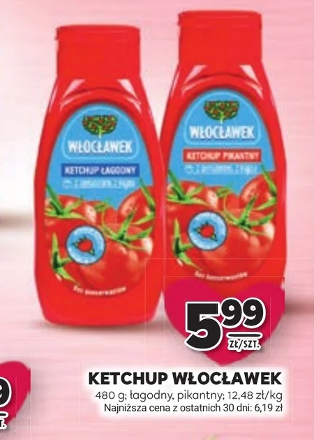 KETCHUP WŁOCŁAWEK 480 g; łagodny, pikantny; 12,48 zł/kg Najniższa cena z ostatnich 30 dni: 6,19 zł