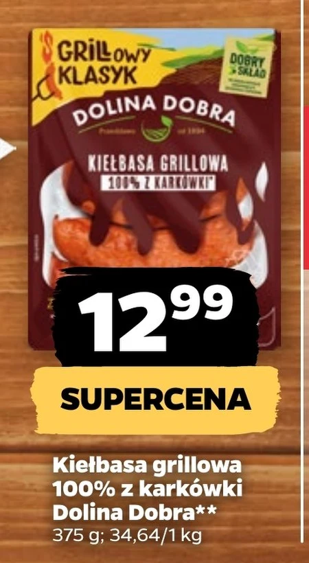 Kiełbasa grillowa 100% z karkówki Dolina Dobra** 375 g; 34,64/1 kg