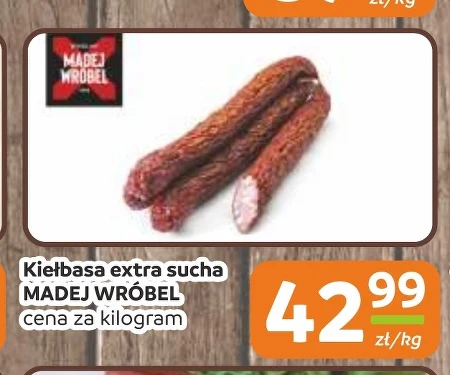 Kiełbasa extra sucha MADEJ WRÓBEL cena za kilogram 42,99 zł/kg W aktualnej ofercie Społem Częstochowa znajdziesz wyjątkową kiełbasę extra suchą od producenta MADEJ WRÓBEL. Czeka na Ciebie bogaty, tradycyjny smak w atrakcyjnej cenie 42,99 zł za kilogram. Warto zaopatrzyć się w tę regionalną specjalność, dostępną w ofercie Społem, aby cieszyć się prawdziwą jakością. Dzięki gazetce promocyjnej Społem Częstochowa, możesz teraz kupić tę kiełbasę w korzystnej cenie.