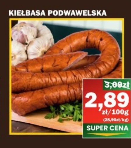 KIEŁBASA PODWAWELSKA Idealna do szybkiego przygotowania aromatycznego drugiego dania, kiełbasa podwawelska sprawdza się doskonale zarówno na patelni, grillu, jak i w piekarnika. Ta tradycyjna polska kiełbasa mięsna wyróżnia się bogatym smakiem i soczystą strukturą, idealna do sandwiczy, bigos lub jako samodzielny dodatek do obiadu rodzinnego.