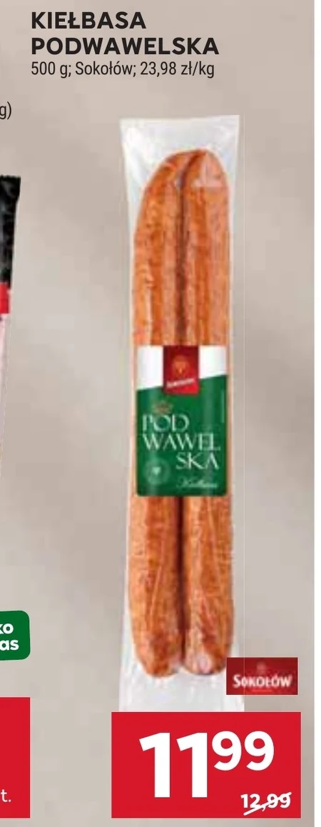 KIEŁBASA PODWAWELSKA 500 g; Sokołów; 23,98 zł/kg