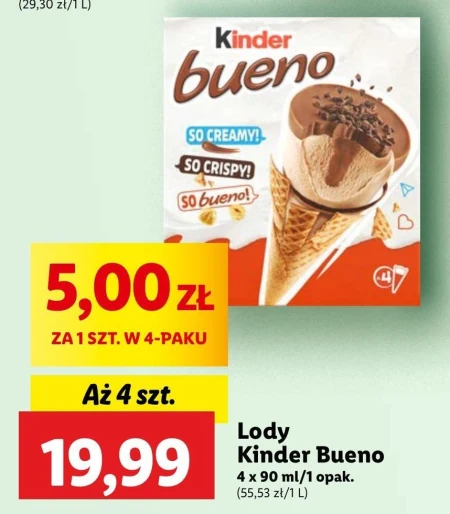 Kinder Bueno Lody o smaku orzechów laskowych z nadzieniem orzechowym w wafelku 360 ml (4 sztuki) - Oferta archiwalna