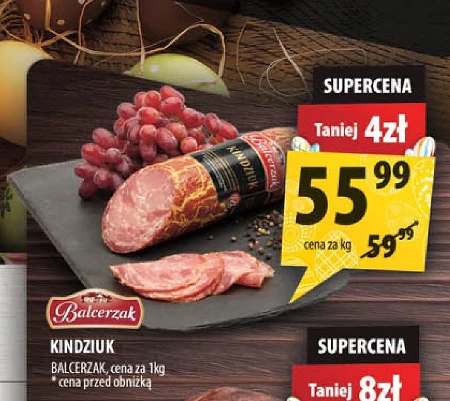 Balcerzak Kindziuk w Arhelan można kupić już za 55,99 zł, co stanowi obniżkę o 4 złote w stosunku do ceny regularnej, a koszt jednego kilograma wynosi 59,99 zł. Ten wędzony produkt mięsny idealnie sprawdzi się jako dodatek do kanapek, składnik deski serów i wędlin, czy element szybkiej przekąski. Kindziuk Balcerzak charakteryzuje się tradycyjnym smakiem i aromatem, a dzięki obecnej promocji jest to doskonała okazja, by zaopatrzyć się w ulubiony produkt w atrakcyjnej cenie. Nie przegap tej okazji, aby delektować się wyśmienitym smakiem Kindziuka Balcerzak!