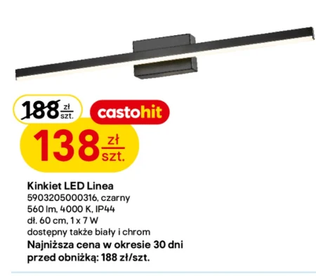 Kinkiet LED Linea 5903205000316, czarny 560 Im, 4000 K, IP44 dł. 60 cm, 1 x 7 W dostępny także biały i chrom Najniższa cena w okresie 30 dni przed obniżką: 188 zł/szt.