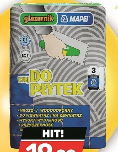 Klej do płytek Glazurnik 25 kg na zewnątrz i do wewnątrz już po 24 h wchodzenie cena za 1 kg = 0,80 zł