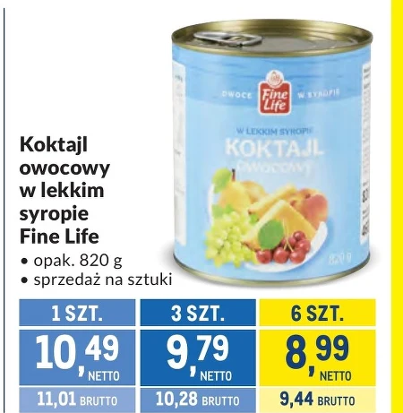 Koktajl owocowy w lekkim syropie Fine Life · opak. 820 g · sprzedaż na sztuki