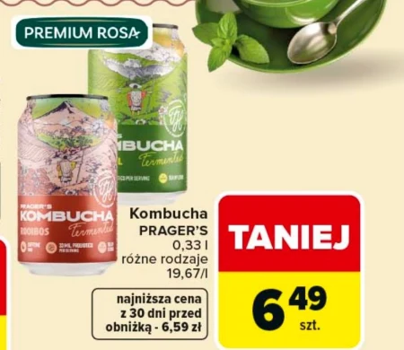 Kombucha PRAGER'S 0,33 l różne rodzaje 19.67/l najniższa cena z 30 dni przed obniżką - 6,59 zł