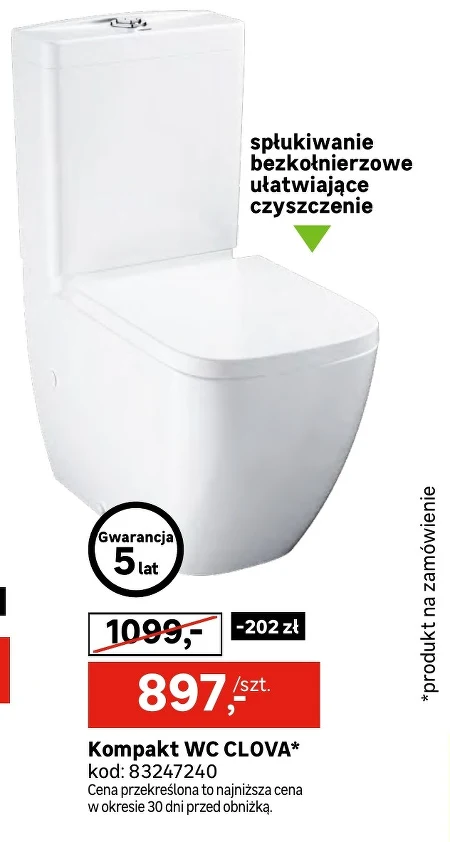 Kompakt WC CLOVA* kod: 83247240 Cena przekreślona to najniższa cena w okresie 30 dni przed obniżką.