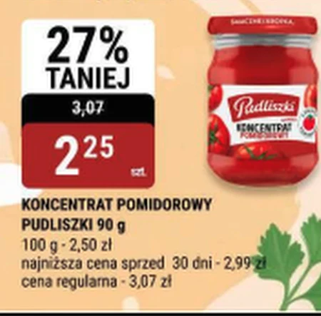 KONCENTRAT POMIDOROWY PUDLISZKI 90 g 100 g - 2,50 zł najniższa cena sprzed 30 dni - 2,99 zł cena regularna - 3,07 zł