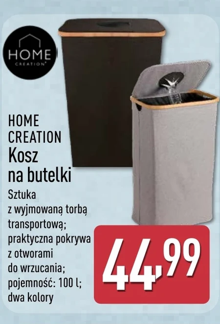 HOME CREATION Kosz na butelki Sztuka z wyjmowaną torbą transportową; praktyczna pokrywa z otworami do wrzucania; pojemność: 100 l; dwa kolory