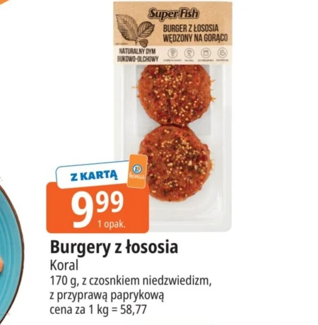 Burgery z łososia Koral 170 g, z czosnkiem niedzwiedizm, z przyprawą paprykową