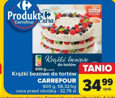 Krążki bezowe do tortów CARREFOUR 600 g, 58,32/kg cena przed obniżką - 32,79 zł