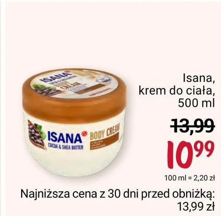 Isana, krem do ciała, 500 ml. Najniższa cena z 30 dni przed obniżką: 13,99 zł.
