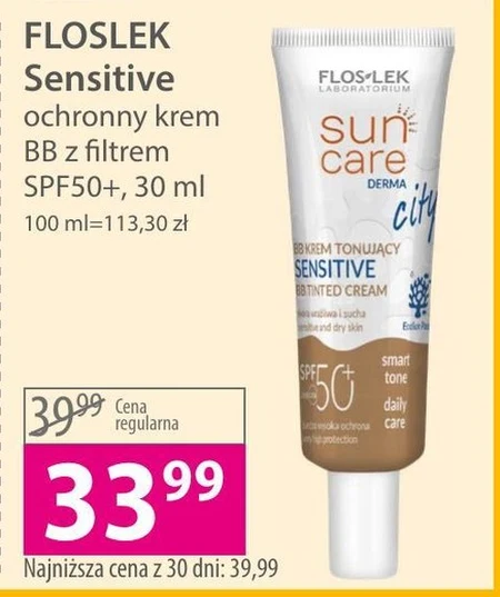 Najniższa cena z 30 dni: 15,99 N FLOSLEK Sensitive ochronny krem BB z filtrem SPF50+, 30 ml. Najniższa cena z 30 dni: 39,99 zł.