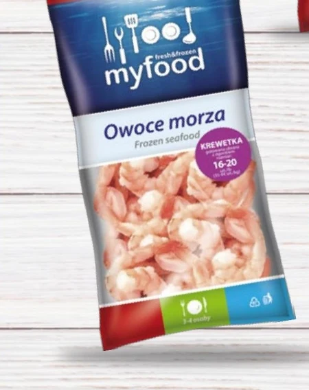 KREWETKI GOTOWANE, OBRANE Z OGONKIEM 16-20; 400 g.