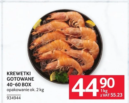 Gotowane krewetki 40-60 BOX to wygodny wybór dla miłośników owoców morza, idealne do sałatek, dań kuchni azjatyckiej lub jako szybka przekąska. Opakowanie zawiera około 0,2 kg krewetek, a cena za kilogram wynosi 44,90 zł brutto. Aktualną promocję na ten produkt znajdziesz w najnowszej gazetce Selgros Cash&Carry, gdzie możesz zaoszczędzić na zakupie. Produkt oznaczony numerem 934944.