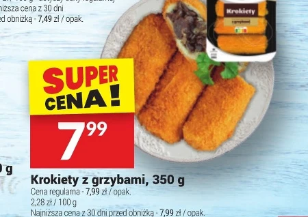 Krokiety z grzybami, 350 g Cena regularna - 7,99 zł / opak. 2,28 zł / 100 g Najniższa cena z 30 dni przed obniżką - 7,99 zł / opak.