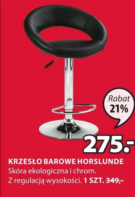 Krzesło barowe Horslunde. Skóra ekologiczna i chrom, z regulacją wysokości.