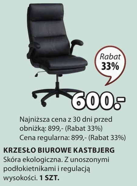 KRZESŁO BIUROWE KASTBJERG Skóra ekologiczna. Z unoszonymi podłokietnikami i regulacją wysokości. 1 SZT. Najniższa cena z 30 dni przed obniżką: 899,- (Rabat 33%) Cena regularna: 899,- (Rabat 33%)