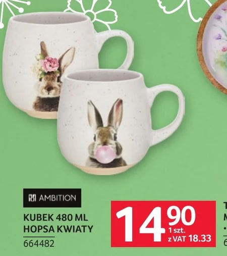 Kubek o pojemności 480 ml marki Ambition jest dostępny w Selgros Cash&Carry w cenie 14,90 zł za sztukę. Kubek z serii HOPSA o dekoracji Kwiaty sprawdzi się do serwowania ulubionych napojów, zarówno na co dzień, jak i podczas specjalnych okazji. Wykonany z wysokiej jakości materiałów, dodaje uroku każdej kuchni i stanowi praktyczny element wyposażenia domu. To okazja, aby wzbogacić swoją kolekcję kubków o wyjątkowy wzór.