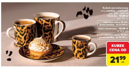 Kubek porcelanowy linia ANIMAL LAMPART poj. 250 - 400 ml filiżanka - 17,99 zł poj. 90 ml najniższa cena z 30 dni przed obniżką - od 21,99 zł talerz deserowy - 19,99 zł Ø 14,5 cm najniższa cena z 30 dni przed obniżką - od 24,99 zł