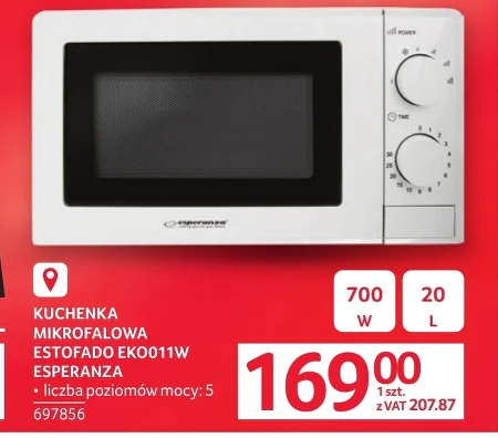 KUCHENKA MIKROFALOWA ESTOFADO EKO011W ESPERANZA · liczba poziomów mocy: 5 697856