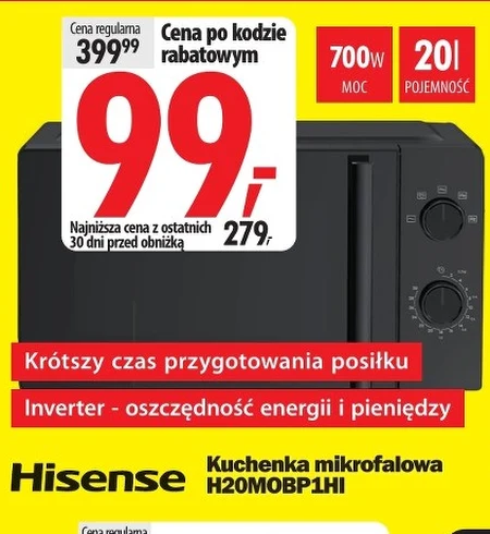 Kuchenka mikrofalowa H20MOBP1HI Krótszy czas przygotowania posiłku Inverter - oszczędność energii i pieniędzy
