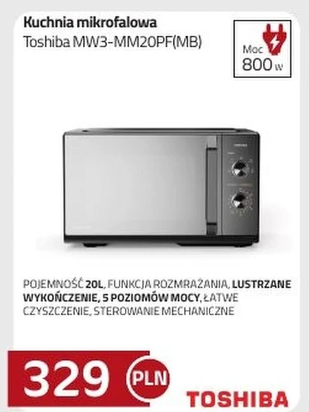 Kuchnia mikrofalowa Toshiba MW3-MM20PF(MB) POJEMNOŚĆ 20L, FUNKCJA ROZMRAŻANIA, LUSTRZANE WYKOŃCZENIE, 5 POZIOMÓW MOCY, ŁATWE CZYSZCZENIE, STEROWANIE MECHANICZNE