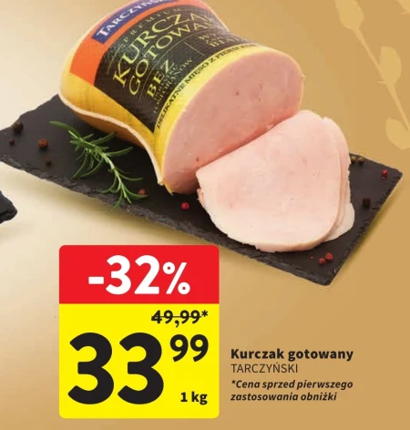 Kurczak gotowany TARCZYŃSKI 49,99* 33,99 1 kg *Cena sprzed pierwszego zastosowania obniżki -32%