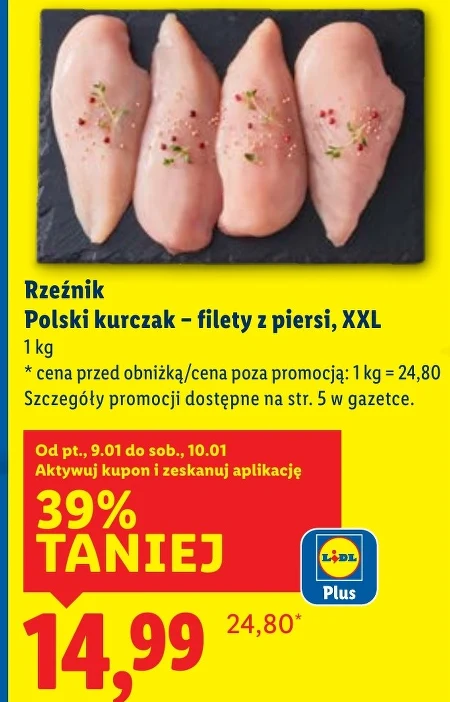 Rzeźnik Polski kurczak - filety z piersi, XXL 1 kg * cena przed obniżką/cena poza promocją: 1 kg = 24,80