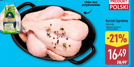 Kurczak Zagrodowy w Aldi dostępny jest teraz w cenie 16,49 zł za kilogram, dzięki 21% zniżce z ceny 20,99 zł. To najniższa cena, jaką Aldi oferował na ten produkt przed obniżką. Idealnie nadaje się do przygotowania różnorodnych dań mięsnych, od pieczonego kurczaka po kotlety. Sprawdź gazetkę Aldi i skorzystaj z promocji, zanim skończą się zapasy.