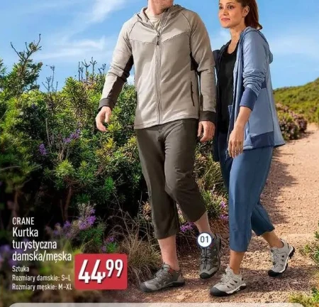 Kurtkę turystyczną Crane można nabyć w ofercie Aldi w cenie 44,99 zł za sztukę. Jest to propozycja zarówno dla kobiet, jak i mężczyzn, idealna na aktywności na świeżym powietrzu. Kurtka występuje w rozmiarach damskich S–L oraz męskich M–XL. Produkt zapewni komfort podczas wędrówek i innych wypraw, chroniąc przed zmiennymi warunkami pogodowymi. Warto rozważyć zakup, jeśli poszukujesz funkcjonalnej odzieży w przystępnej cenie. Oferta ważna od 2026-04-15 do 2026-04-18 Źródło: gazetka Aldi