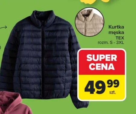 Kurtka męska TEX rozm. S - 3XL SUPER CENA 49,99 szt. Kurtka męska TEX jest dostępna w ofercie Carrefour w super cenie 49,99 zł za sztukę. Odzież ta występuje w szerokim zakresie rozmiarów od S do 3XL. Jest to praktyczne rozwiązanie dla mężczyzn poszukujących funkcjonalnego okrycia wierzchniego. Warto skorzystać z tej okazji, ponieważ niska cena sprawia, że oferta jest wyjątkowo atrakcyjna. Oferta ważna od 2026-04-07 do 2026-04-18 Źródło: gazetka Carrefour