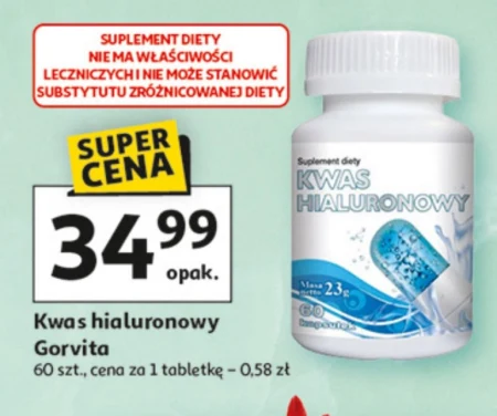 Kwas hialuronowy Gorvita 60 szt., cena za 1 tabletkę – 0,58 zł