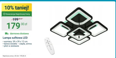 Lampa sufitowa LED · wymiary: 39 x 39 x 12 cm · barwa światła - ciepła, zimna · pilot w zestawie Najniższa cena z 30 dni: 199,00 zł