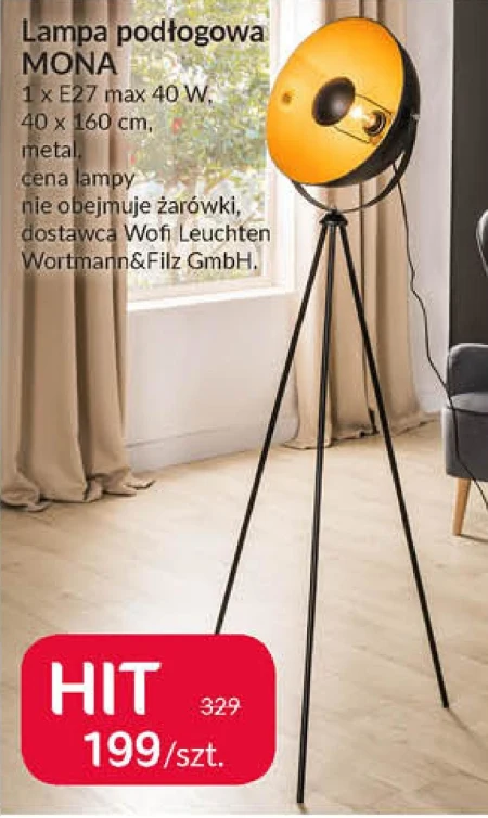Lampa podłogowa MONA, 1xE27 max 40 W 40 x 160 cm, metal. Cena lampy nie obejmuje żarówki.