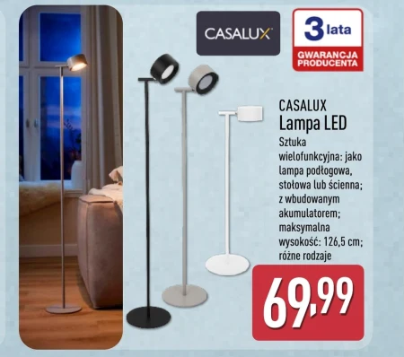 CASALUX Lampa LED Sztuka wielofunkcyjna: jako lampa podłogowa, stołowa lub ścienna; z wbudowanym akumulatorem; maksymalna wysokość: 126,5 cm; różne rodzaje