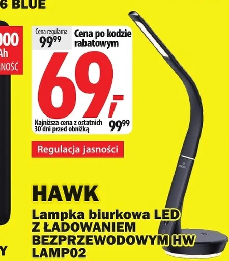 Lampka biurkowa LED HAWK z ładowaniem bezprzewodowym występuje w ofercie Media Expert w cenie 69,99 zł, dzięki obniżce z 99,99 zł. To praktyczne rozwiązanie do pracy, nauki czy czytania, zapewniające komfortowe oświetlenie. Regulacja jasności pozwala dostosować światło do indywidualnych potrzeb i warunków otoczenia, a funkcja ładowania bezprzewodowego dodatkowo zwiększa wygodę użytkowania. Warto skorzystać z tej okazji, ponieważ to najniższa cena z ostatnich 30 dni przed obniżką.