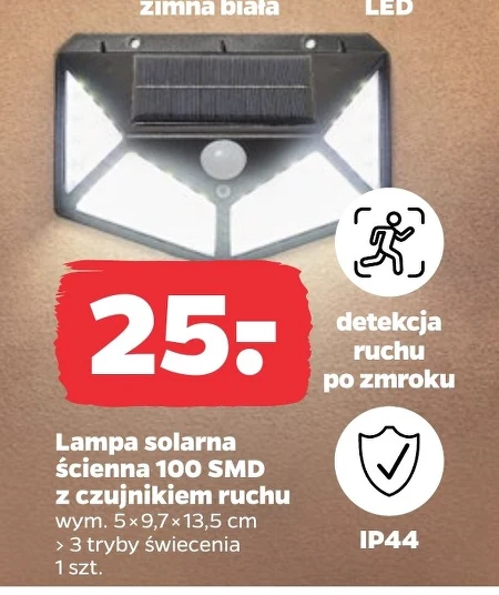 Lampa solarna ścienna 100 SMD z czujnikiem ruchu wym. 5 x 9,7 x 13,5 cm; 3 tryby świecenia 1 szt.
