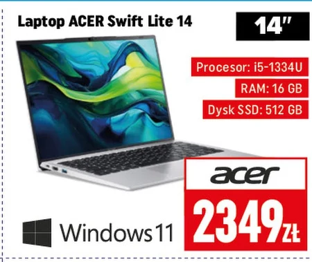 Laptop ACER Swift Lite 14 14" Procesor: i5-1334U RAM: 16 GB Dysk SSD: 512 GB