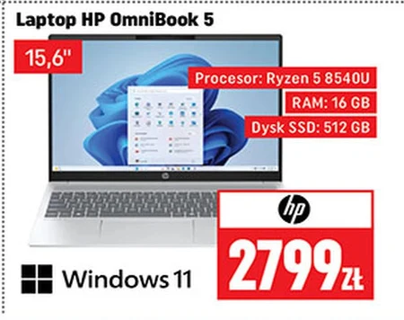 Laptop HP OmniBook 5 Procesor: Ryzen 5 8540U RAM: 16 GB Dysk SSD: 512 GB