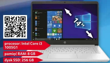 HP NOTEBOOK 14-DQ1043CL REFABRYKOWANY ,procesor : Intel Core i3 100561, pamięć RAM : 8 GB dysk SSD : 256 GB. Cena netto - 1349 zł.